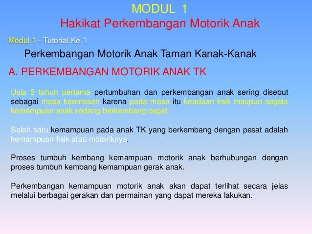 Guru dapat membantu anak mengembangkan kemampuan motorik halusnya dengan memanfaatkan beragam media. Mahasiswa mampu menjelaskan pentingnya pengembangan motorik halus sejak usia dini. Perkembangan motorik adalah proses tumbuh kembang kemampuan gerak seorang anak.
