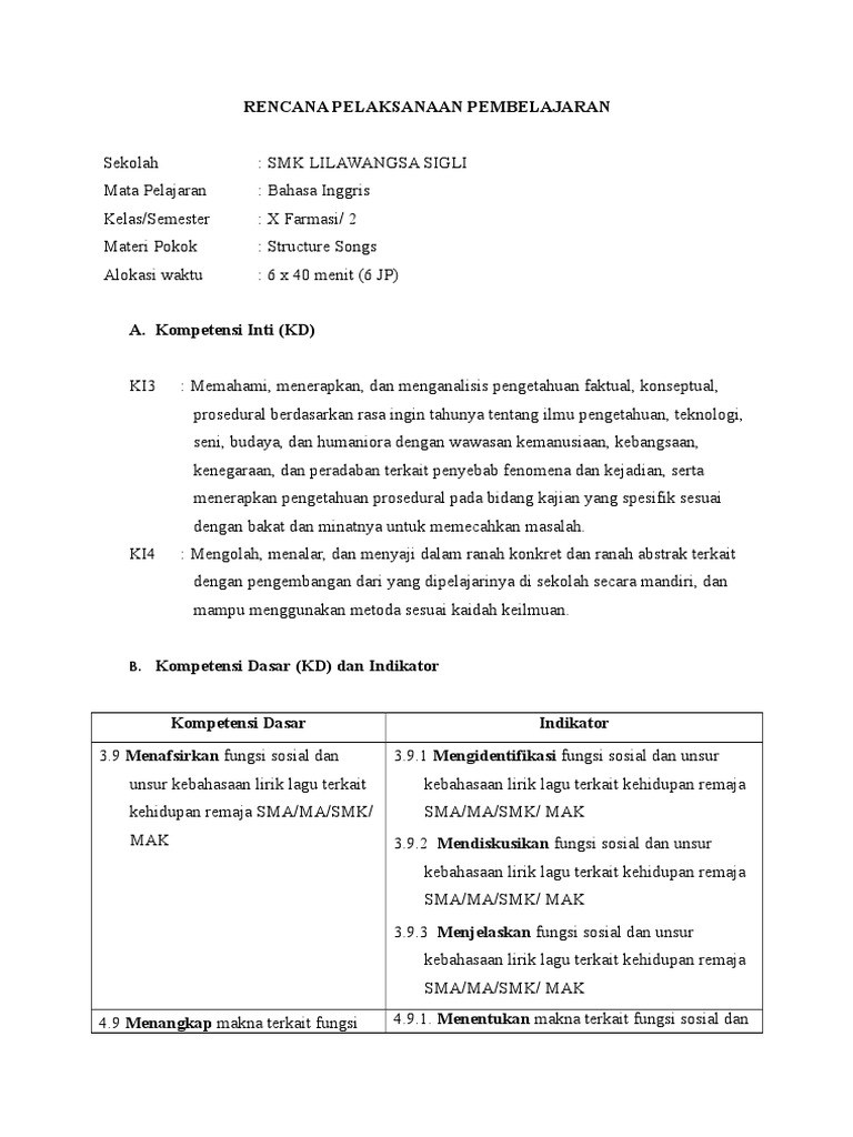 Kd 3 9 Songs Semua Lampiran Struktur Lagu Sajak