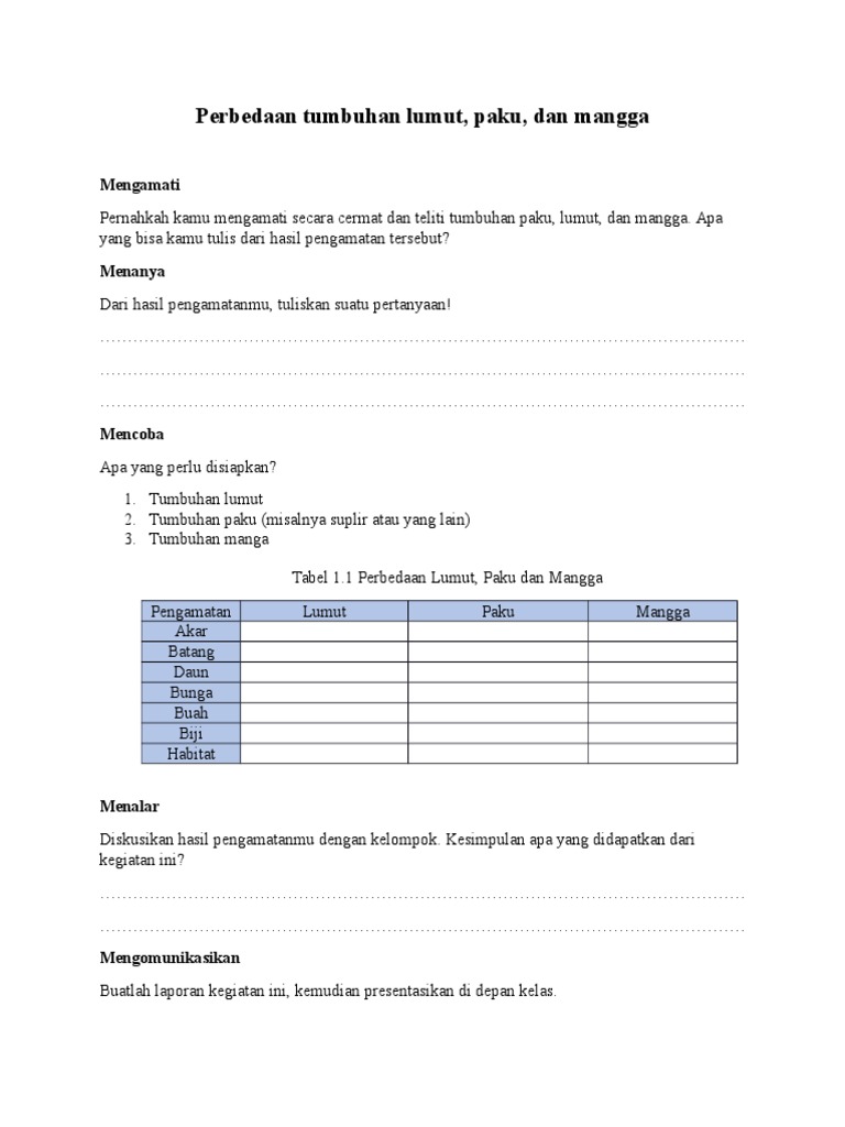 Tabel Perbedaan Tumbuhan Lumut Paku Dan Mangga Terkait Perbedaan