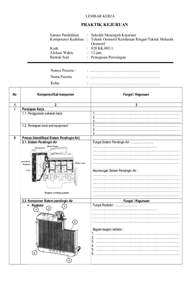 Job Sheet Memperbaiki Sistem Pendingin 1