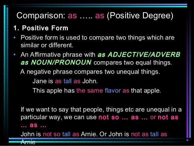 Andi is 165 cm tall. Degrees of Comparison are used when we compare one person or one thing with another. When we speak about only one person or thing We use the Positive degree.